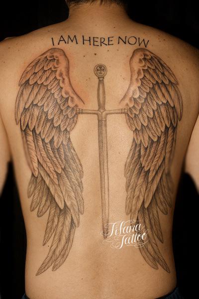 剣と翼のバックピースタトゥー タトゥー 一覧 > Tattoo by Mica 2019.06.05 翼|羽、剣、文字をひとつのデザインにまとめたバックピース|背中一面のタトゥー|刺青作品です。所要時間の目安は30時間前後、6回前後で完成です。 Style メンズ チカーノ・ブラック&グレイ 洋柄 Motif 羽・翼 武器 シンメトリー Tattoo Tag ダガー、短剣 Size 背中一面 Body parts 背中
