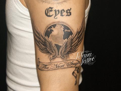 羽|翼のタトゥー タトゥー 一覧 > Tattoo by Naoto 2015.01.09 翼のモチーフに文字と地図をデザインしたタトゥー|刺青作品です。所要時間の目安は4時間前後、1回の施術で完成するサイズです。 Style メンズ 洋柄 Motif 羽・翼 Size CDジャケット Body parts 腕