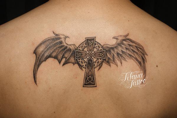 ケルト・クロスと翼のタトゥー タトゥー 一覧 > Tattoo by Kaz 2015.10.18 ケルトのクロスのモチーフ、天使と悪魔の羽|翼をひとつのデザインにまとめたタトゥー|刺青作品です。所要時間の目安は3時間半前後、1回で完成しました。 Style メンズ チカーノ・ブラック&グレイ 洋柄 Motif クロス 羽・翼 Size CDジャケット Body parts 背中
